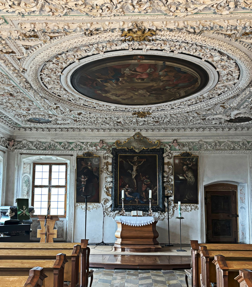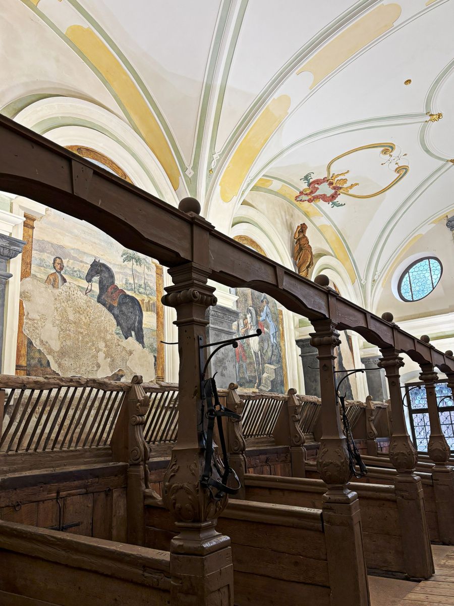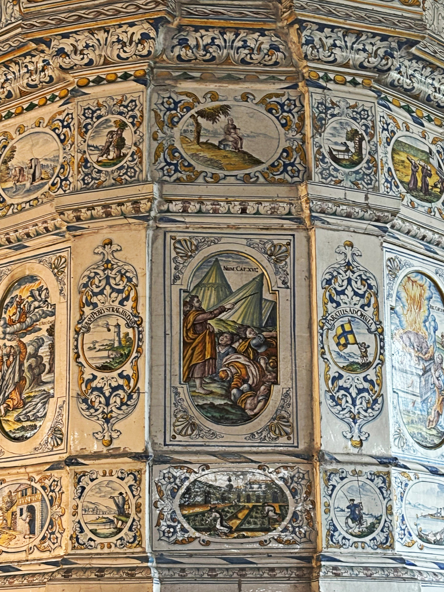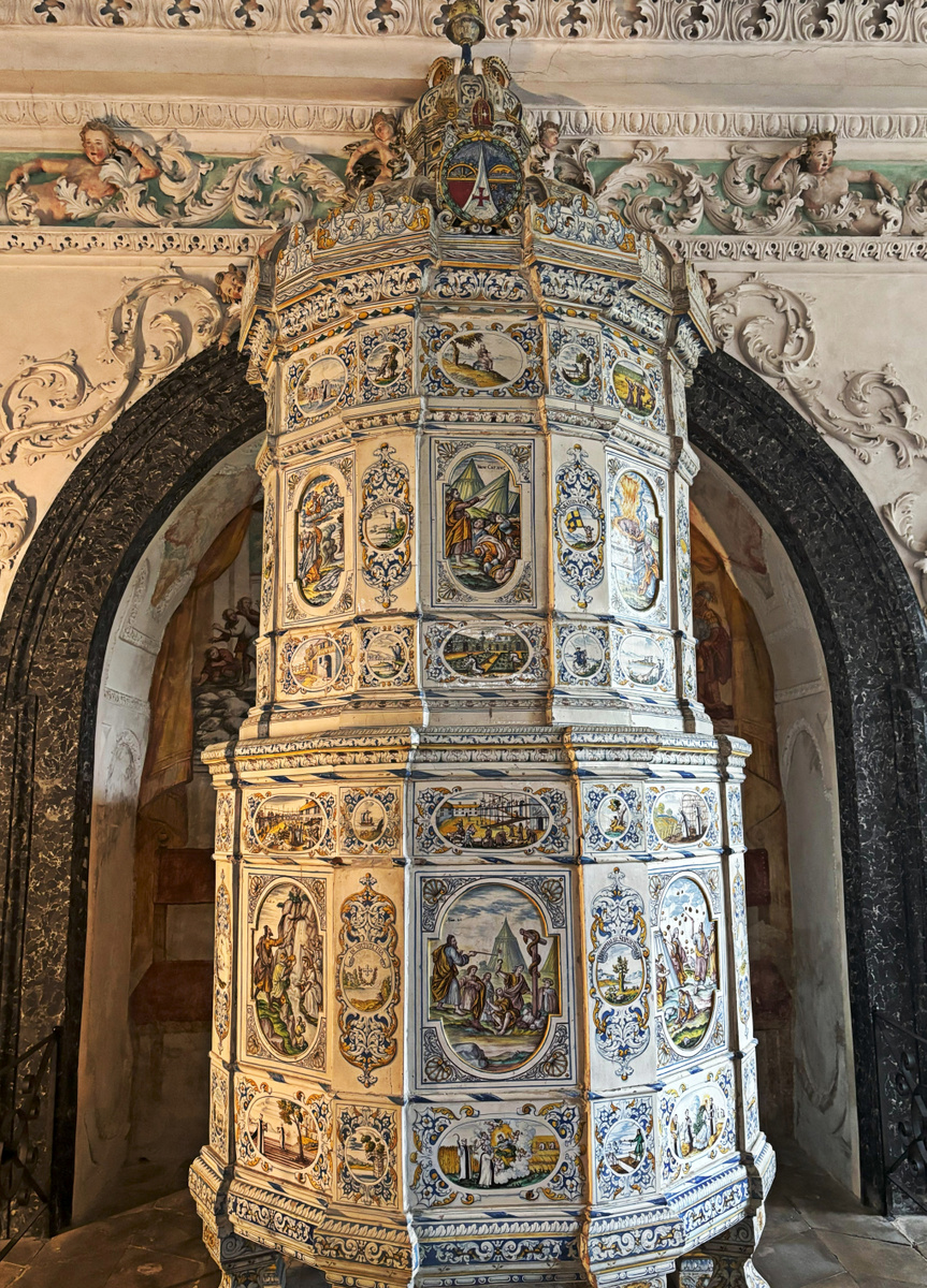 - kunstvoll gestaltete Kacheln mit Alltagsmotiven der Klosterbrüder