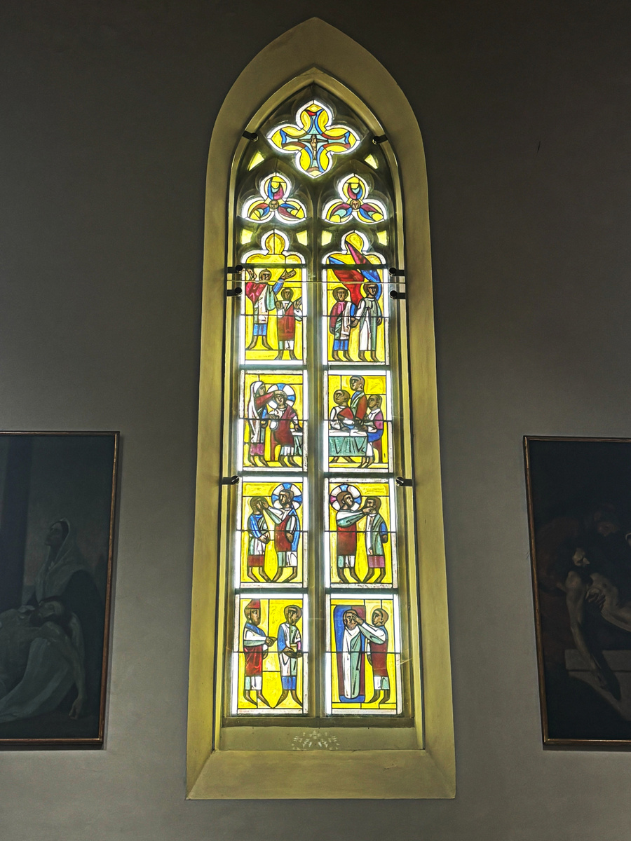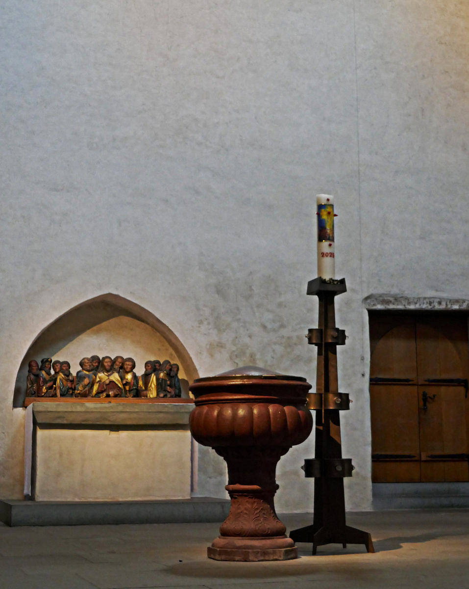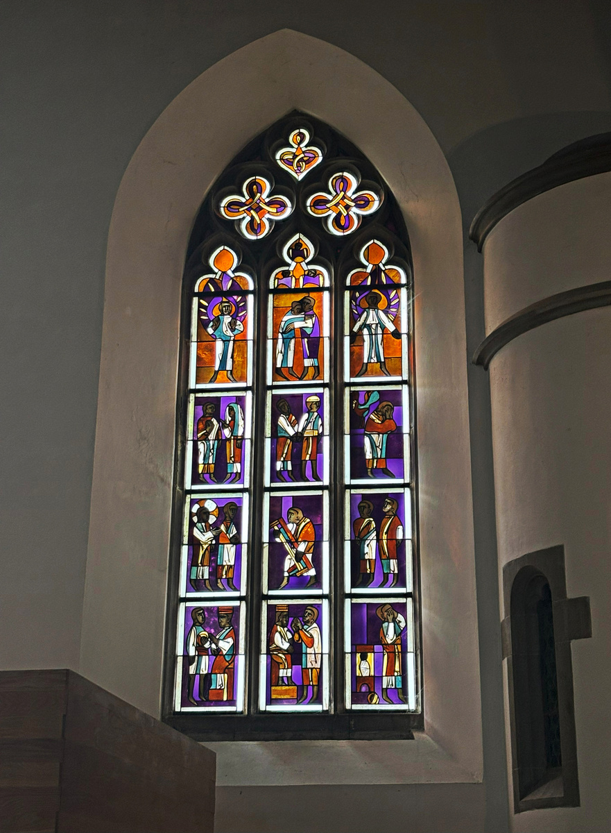 - kunstvoll gestaltete Kacheln mit Alltagsmotiven der Klosterbrüder